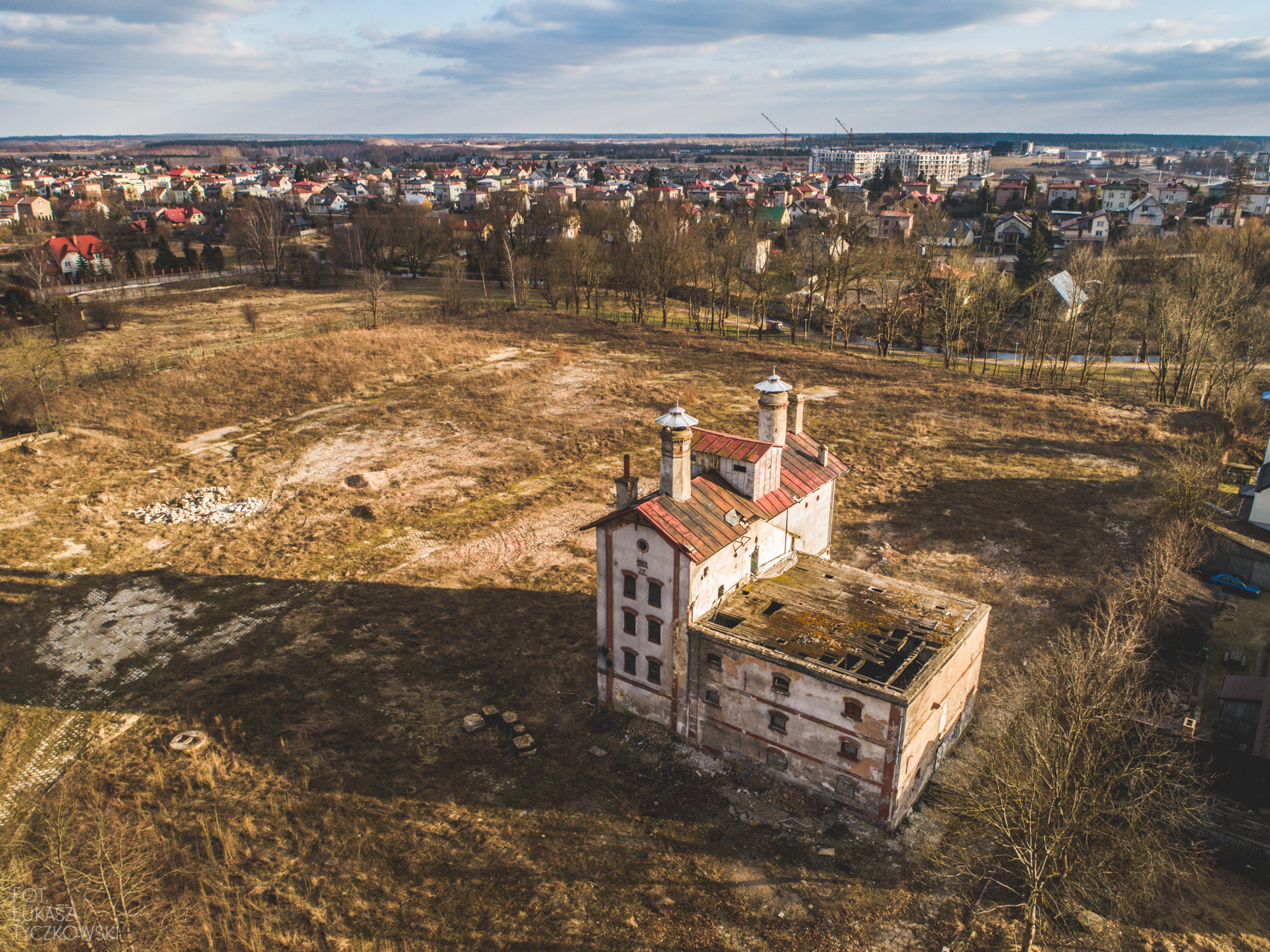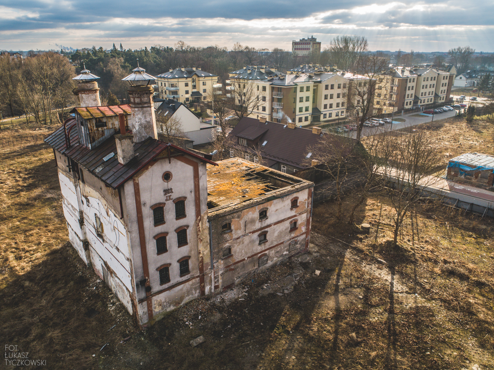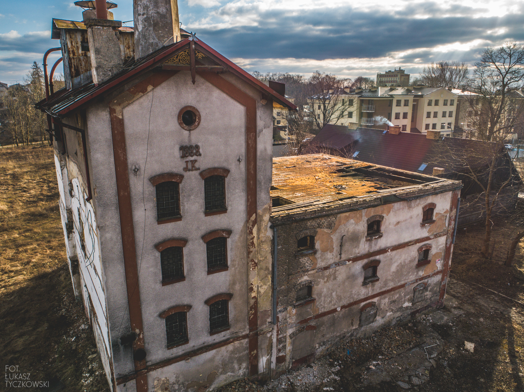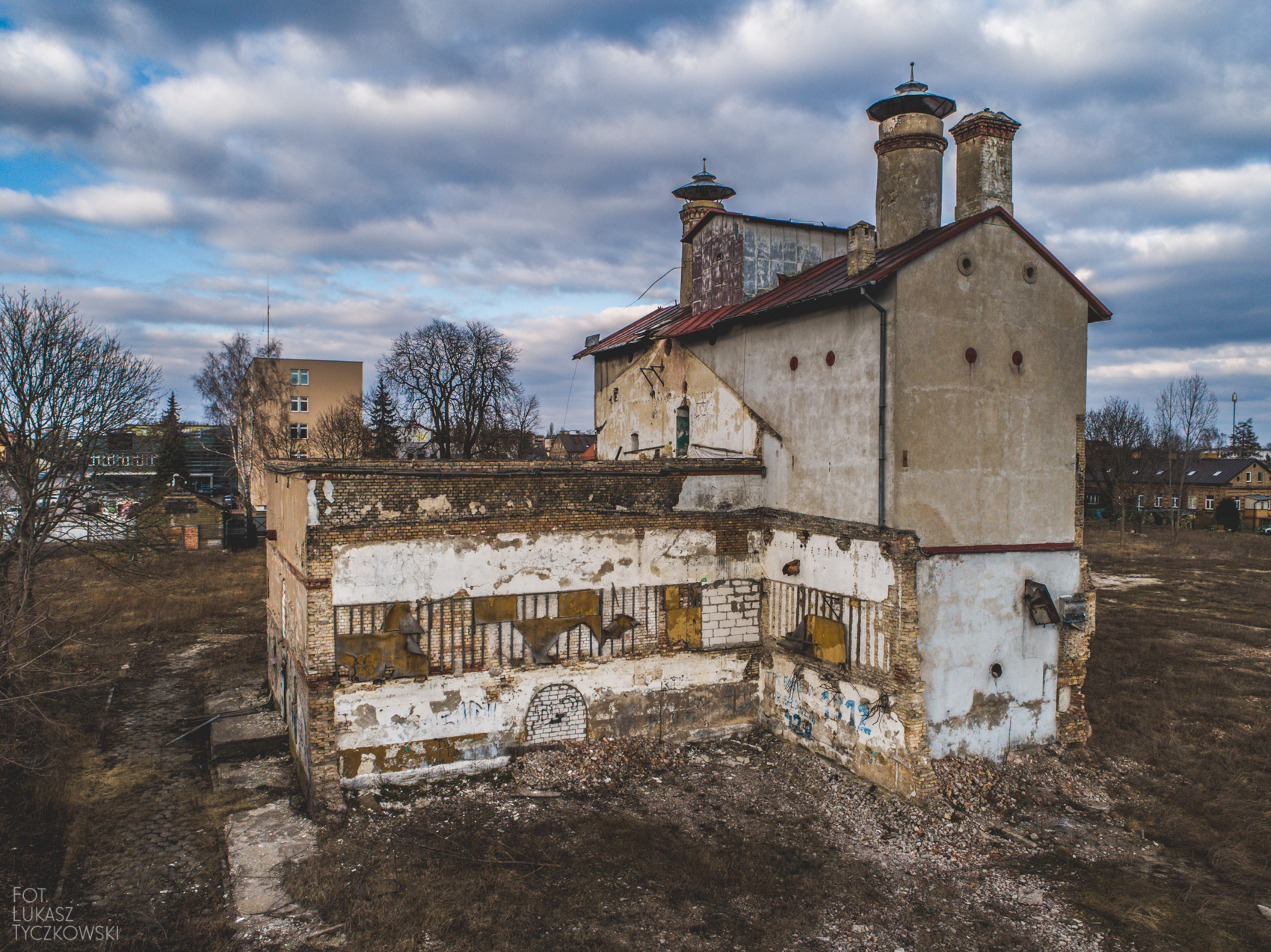 Dzisiaj postanowiłem wybrać się w to miejsce z dronem, chciałem uwiecznić może już ostatnie chwile browaru. Nie zawiodłem się. Połowa czasu lotu to słoneczne chwile, które w ciekawy sposób pokazują bryłę budynku. Druga połowa to już częściowe zachmurzenie, ale nie zrezygnowałem ze zdjęć. Poniżej efekt końcowy mojego lotu.
